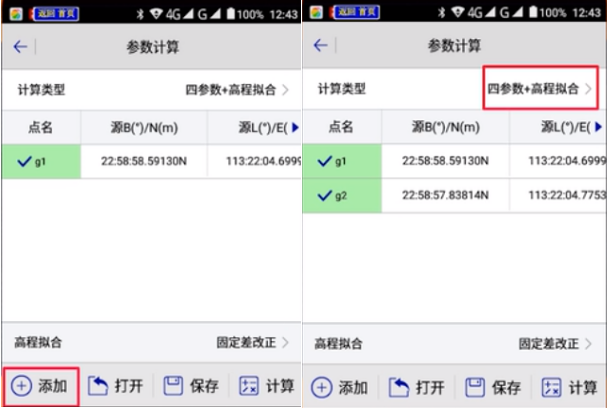 6、回到參數(shù)計算界面,測區(qū)周圍添加至少2個參數(shù),點(diǎn)擊【添加】,與步驟5重復(fù)操作,如圖所示: