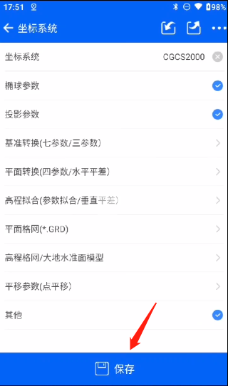 7、返回頁面,其他保持默認,點擊【保存】,坐標系統(tǒng)設置完畢,新建項目完成。如圖所示: