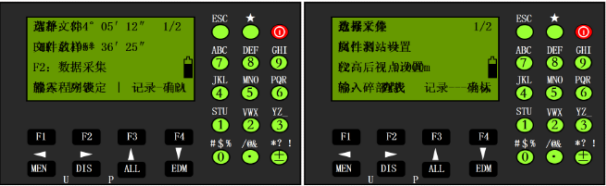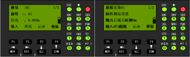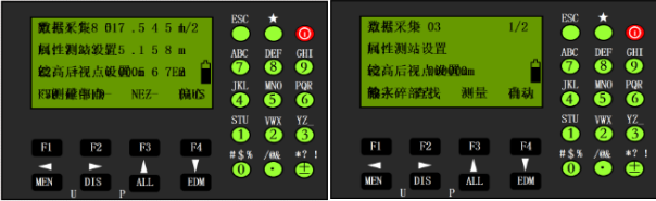 1、按下功能鍵中的【MENU鍵】→“數(shù)據(jù)采集”對位的【鍵F2】,如左圖所示;按下“確認”對位的【鍵F4】→按下“測站設(shè)置”對位的鍵F1,如右圖所示: