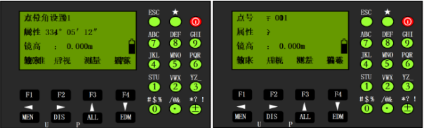 5、轉(zhuǎn)動望遠鏡,對準后視點位置棱鏡的中心,按下“是”對位的【鍵F3】→按下“輸入”對位的【鍵F1】,并輸入該點點號,如左圖所示;按下“確認”對位的【鍵F4】→按下“測量”對位的【鍵F3】,如右圖所示: