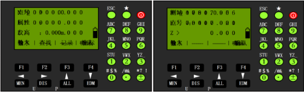 6、按下“NEZ”對位的【鍵F3】,并記錄顯示的坐標數(shù)值是否與原后視點坐標相符→按下“PAUS”對位的【鍵F4】,如左圖所示;按下“碎部點”對位的【鍵F3】→按下“輸入”對位的【鍵F1】,并用右邊數(shù)字鍵輸入該點號,如右圖所示: