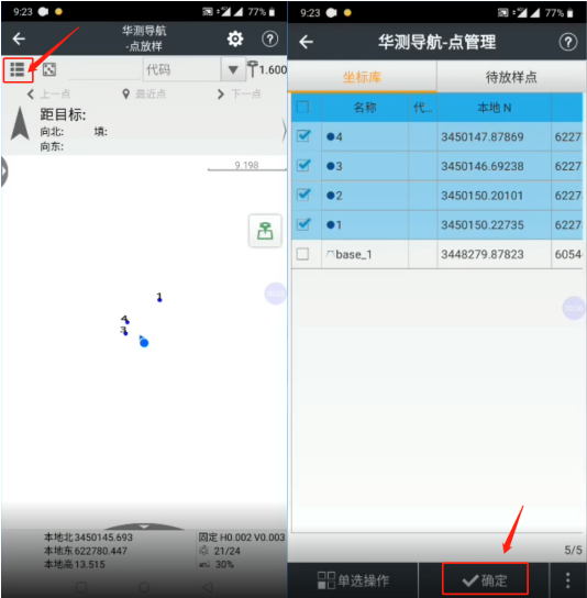 2、點擊左上角點管理圖標(注:在點管理里面可輸入放樣點坐標,點數(shù)量較多時可批量導(dǎo)入,放樣點添加到待放樣點庫中),打開【坐標庫】,選擇點坐標,點擊【確定】,如圖所示: