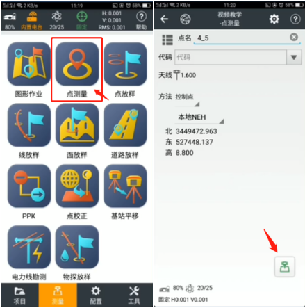 1、進(jìn)入LandStar7版軟件頁面,找到下方測量選項(xiàng),點(diǎn)擊【測量】-【點(diǎn)測量】- 修改【點(diǎn)名】進(jìn)行測量,測量完畢后點(diǎn)擊右下角圖標(biāo),將所有的控制點(diǎn)都輸入并測量完成,如圖所示:
