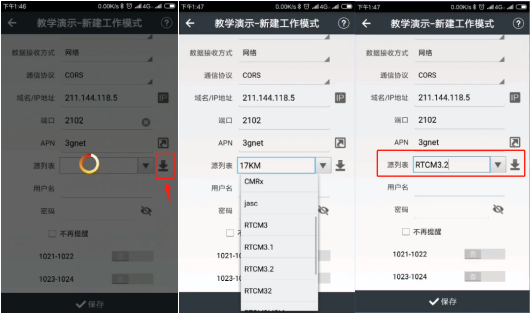 2、進入頁面,是否設(shè)置RTK選擇【是】- 工作方式選擇【自啟動移動站】- 數(shù)據(jù)接收方式選擇【網(wǎng)絡(luò)】 (手機卡在接收機中選擇網(wǎng)絡(luò),手機卡在手簿中選擇手簿網(wǎng)絡(luò))- 通訊協(xié)議選擇【CORS】- IP 地址【CORS 的 IP,可手動輸入】- 端口【CORS 端口,可手動輸入】,點擊APN后面小圖標(biāo),點擊【獲取】,得出數(shù)據(jù),點擊【設(shè)置】;如圖所示: