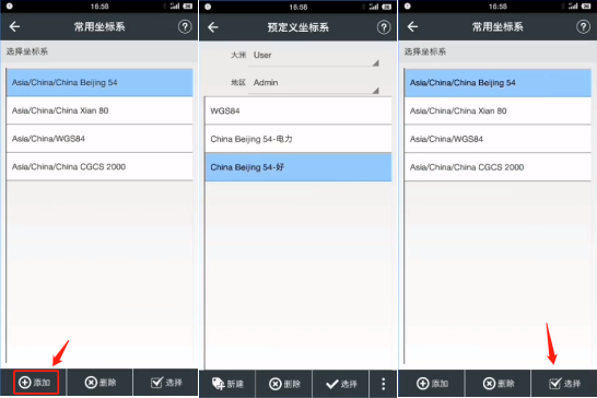 3、點(diǎn)擊坐標(biāo)系【...】進(jìn)入常用坐標(biāo)系界面,如果沒(méi)有所需坐標(biāo)系,點(diǎn)擊左下角【添加】找到需要的坐標(biāo)系選擇即可,如圖所示: