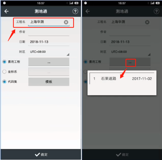 2、進(jìn)入新建工程界面,工程名稱以“項(xiàng)目名稱”或“日期”來(lái)命名。點(diǎn)擊套路工程【...】,選擇需要套用的工程,點(diǎn)擊【確定】,如圖所示: