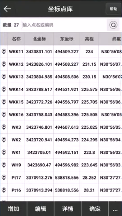 5、頁面跳轉到坐標點庫,再次點擊【確定】,所有數(shù)據(jù)就導入出來了。如圖所示: