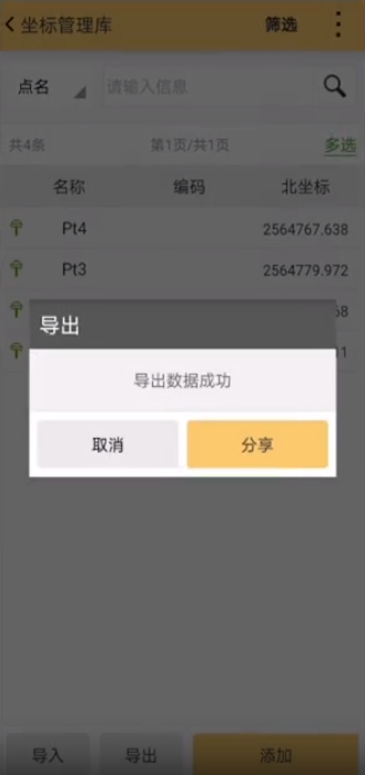 4、界面顯示導(dǎo)出數(shù)據(jù)成功,點擊分享將數(shù)據(jù)分享到其他平臺,完成操作。如圖所示: